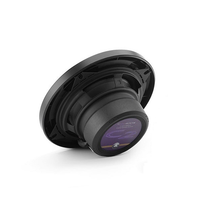 C2-400x-systemet har 4″ (100 mm) högtalarelement med mineral bestyckade polypropylen konor, lång slaglängd och stampade stålramar. Designen drar nytta av JL Audios omfattande erfarenhet av design och avancerade modellerings system.