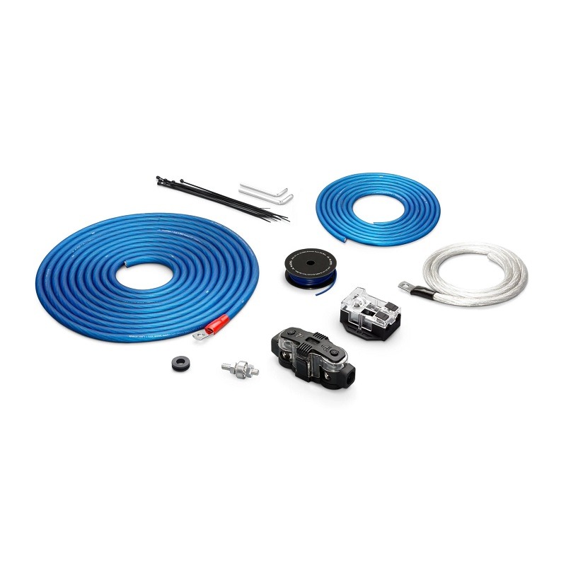 - 6.1 m Blå Premium 4 AWG/21,2mm² kabel, färdig med en massiv pressad ring terminal.